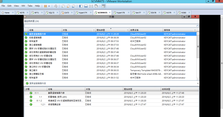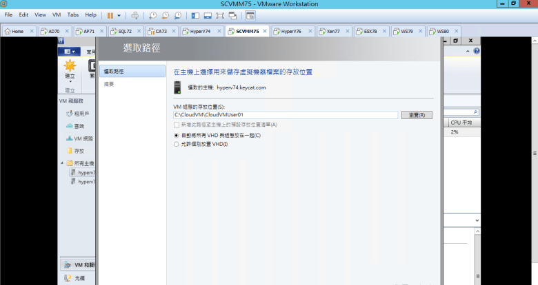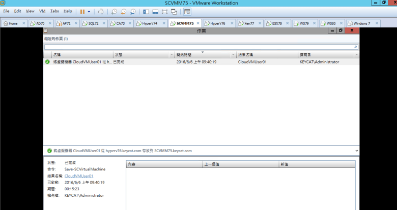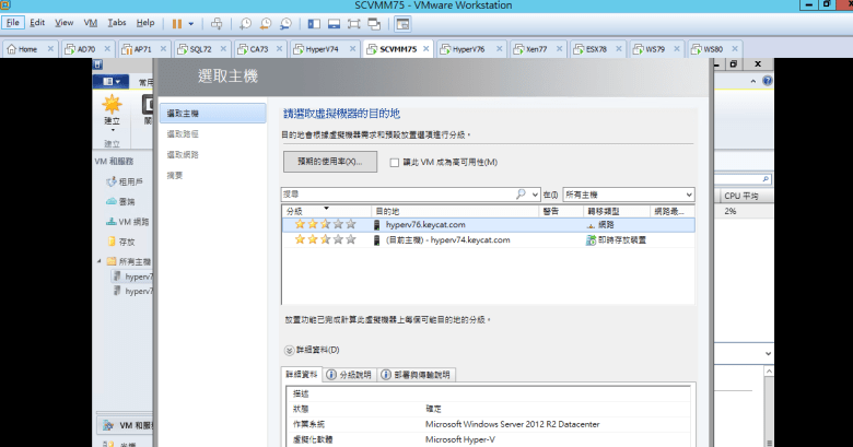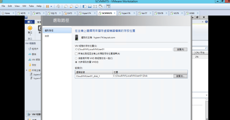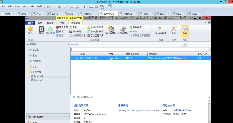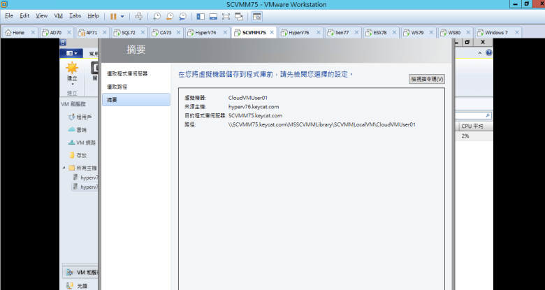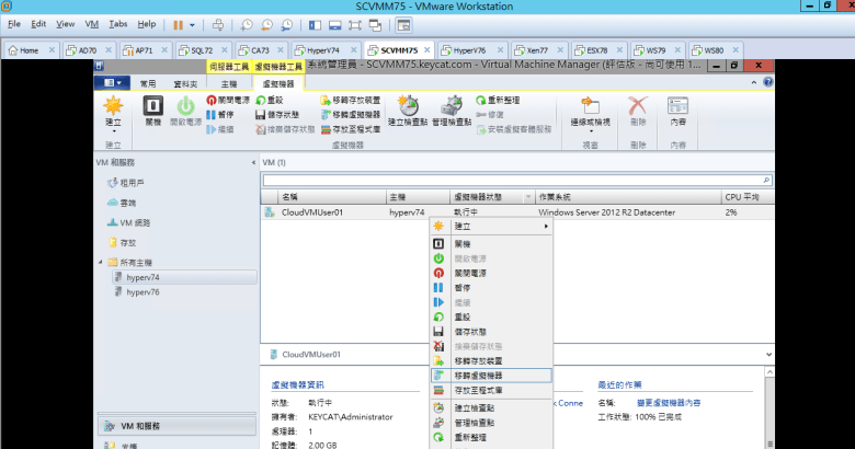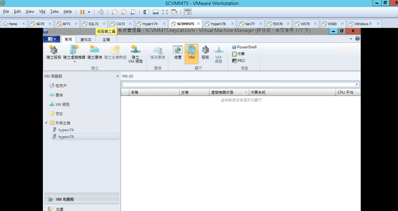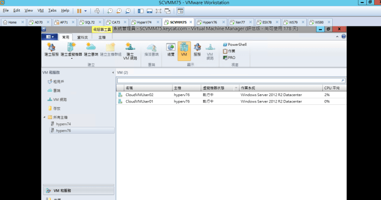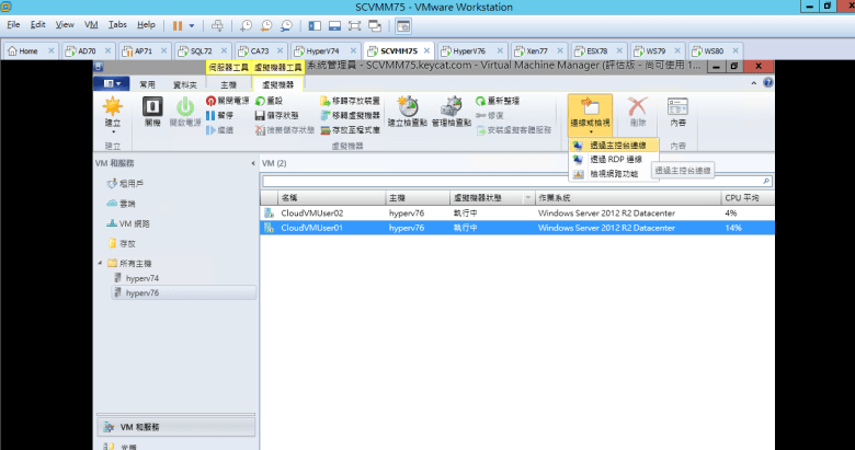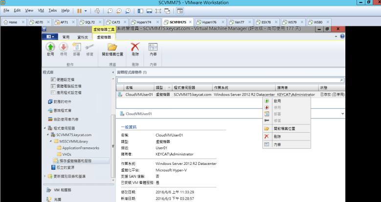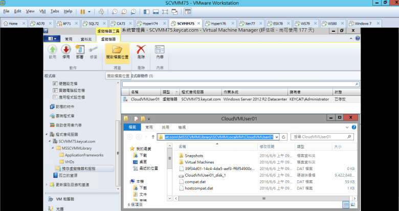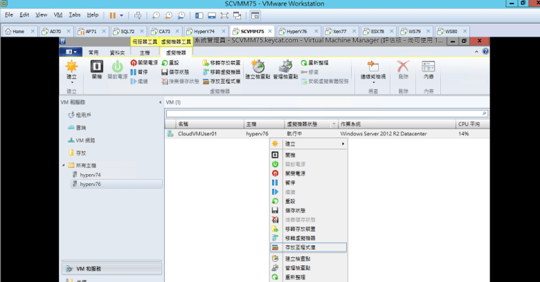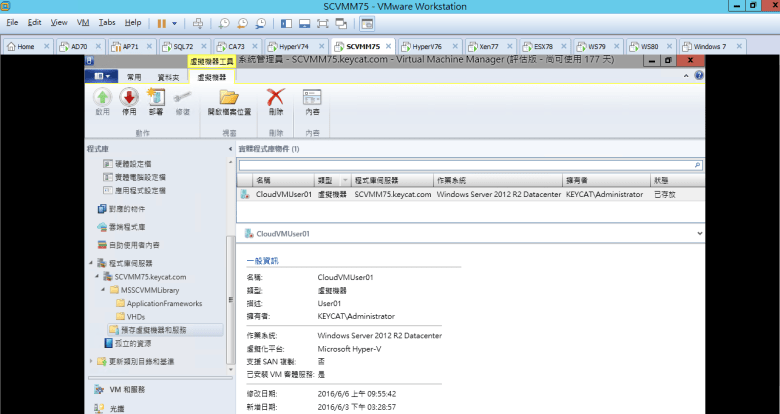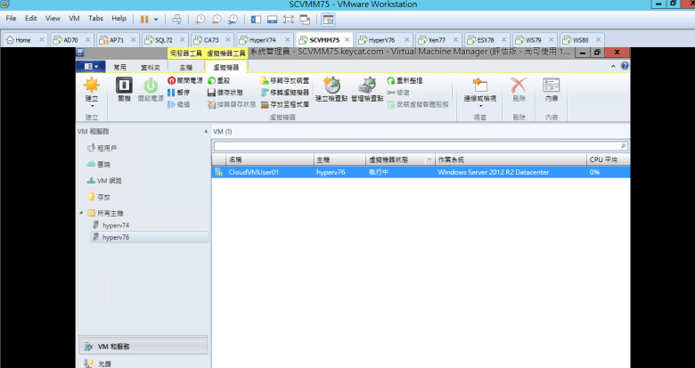 點選 SCVMM75.keycat.com (底下 預存虛擬機器的服務)