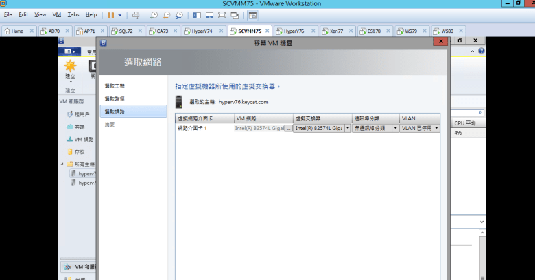 選擇 HyperV76.keycat.com (從目前 HyperV74.keycat.com 要進行移轉至 [ 選取 ] 目的地)