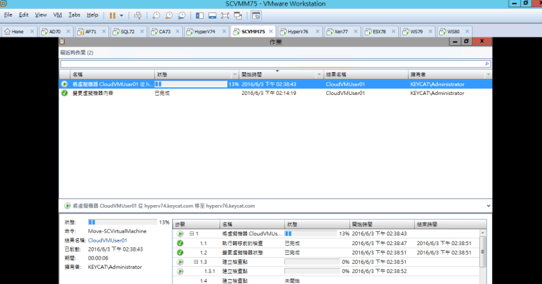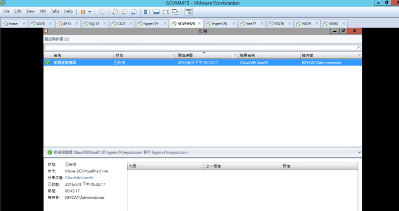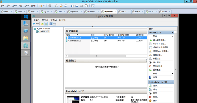 點選 HyperV76 (則會發現 CloudVMUser01 搬移成功)
