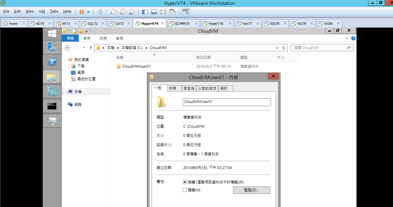 儲存虛擬機器位置 (C:\CloudVM\CloudVMUser01) 是否搬移成功