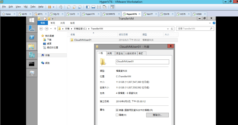 ( 在 HyperV76.keycat.com 建立資料夾 C:\TransferVM )