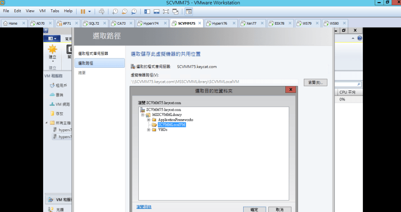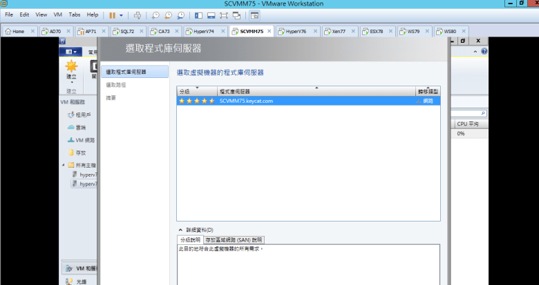 選擇 SCVMM75.keycat.com (程式庫伺服器)