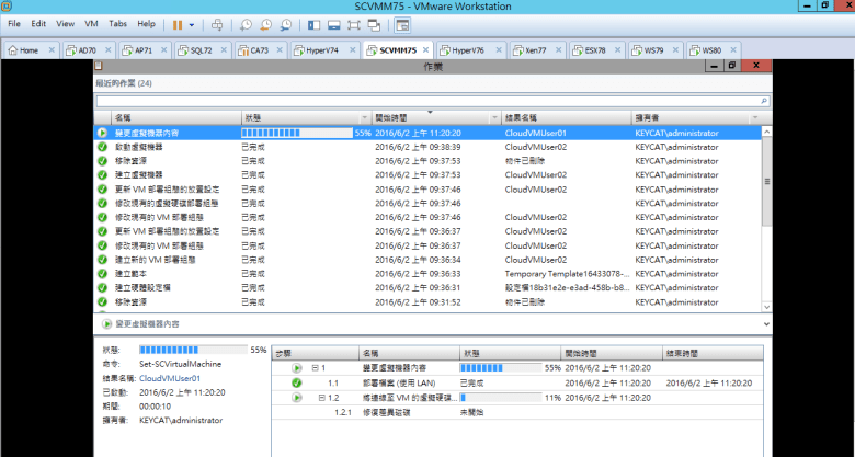 等待 虛擬機 從程式庫伺服器 部署至 HyperV76.keycat.com