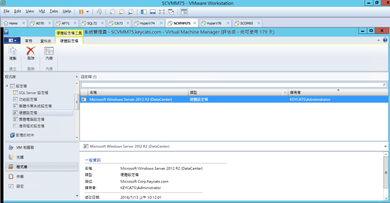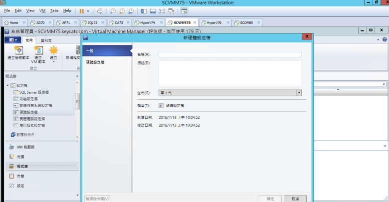 設定 System Center 2012 R2 Virtual Machine Manager (建立新硬體設定檔)