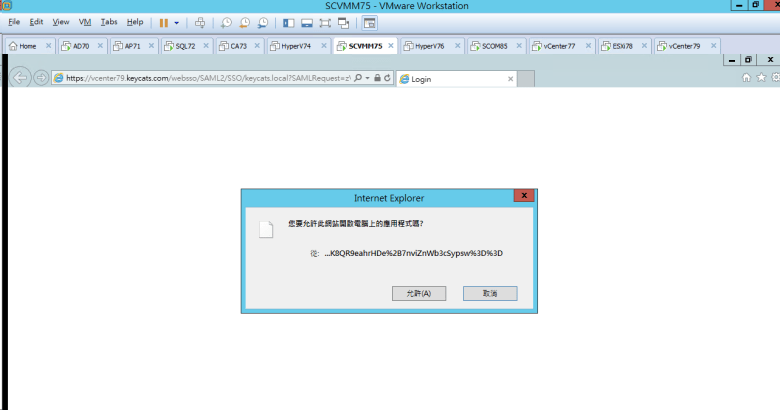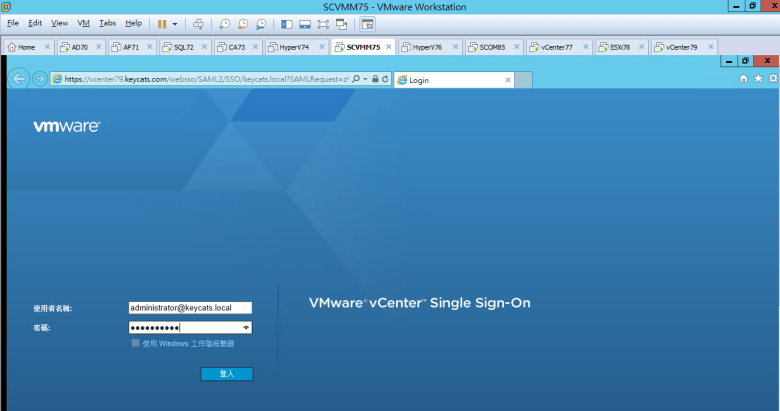 輸入 administrator@keycats.local 及 密碼 (vCenter79.keycats.com 管理員帳戶)