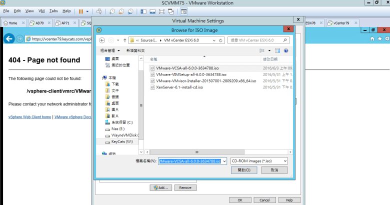 掛載 VMware-VCSA-all-6.0.0-3634788.iso