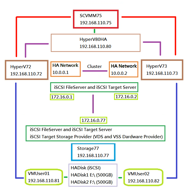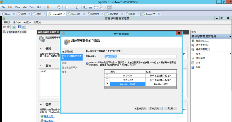 輸入 172.16.0.1 and 172.16.0.2 (HyperV72 and HyperV73)
