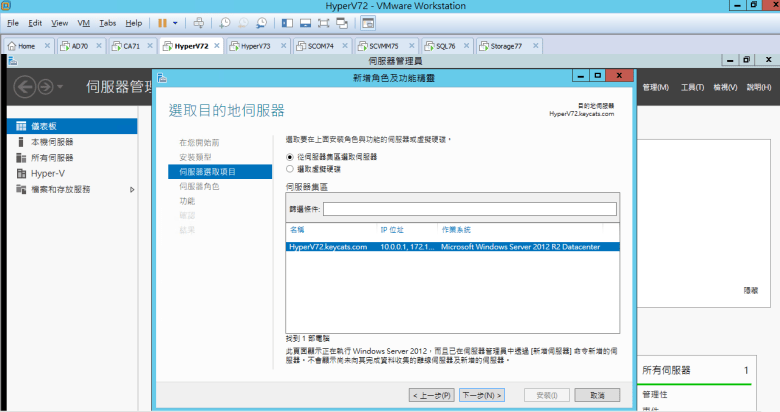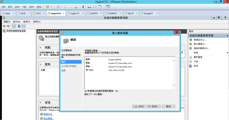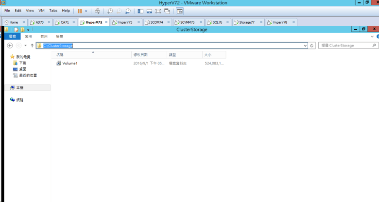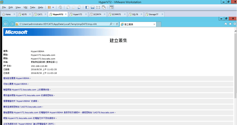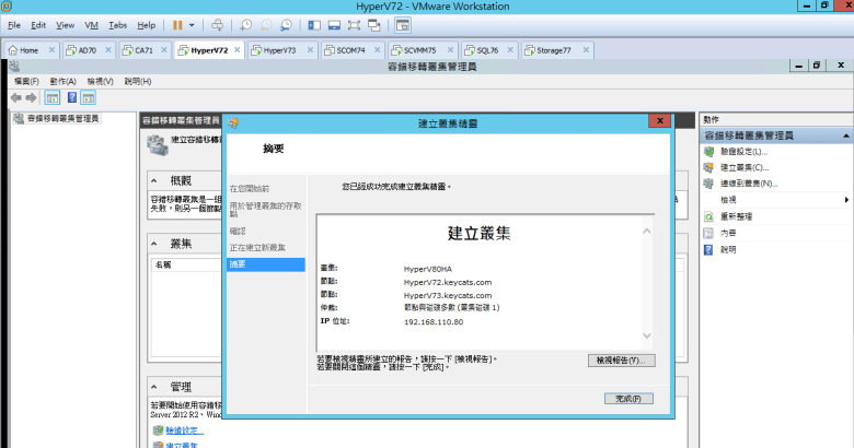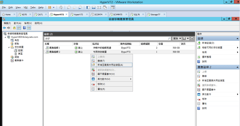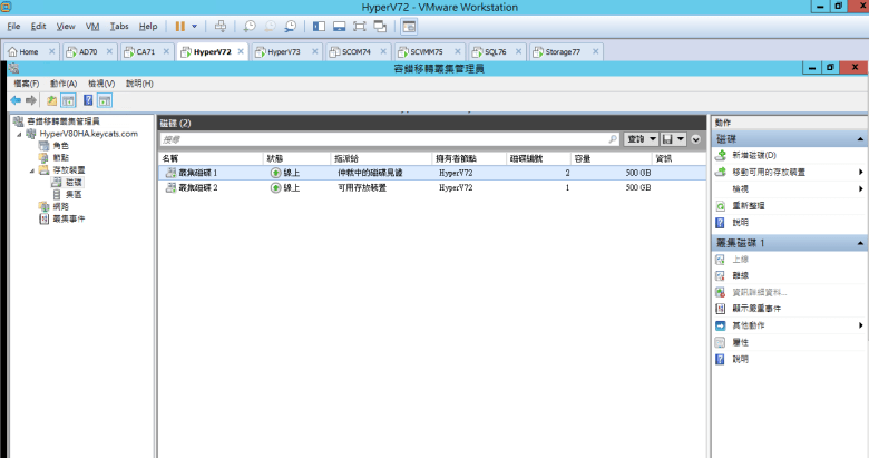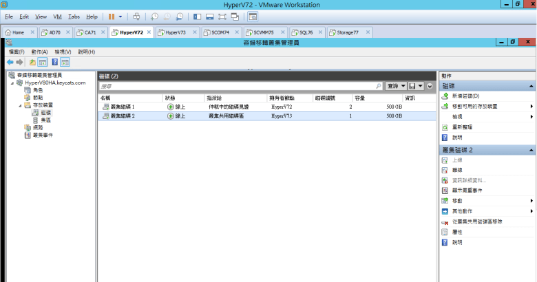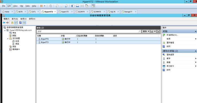 目前 有兩個節點 (HyperV72 and HyperV73)