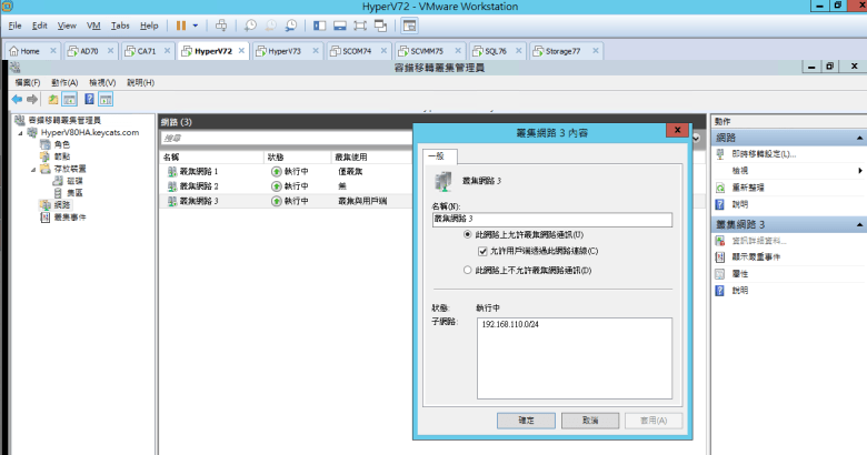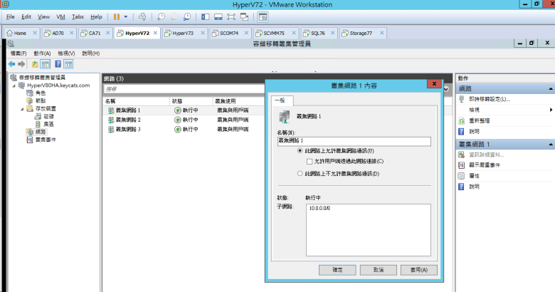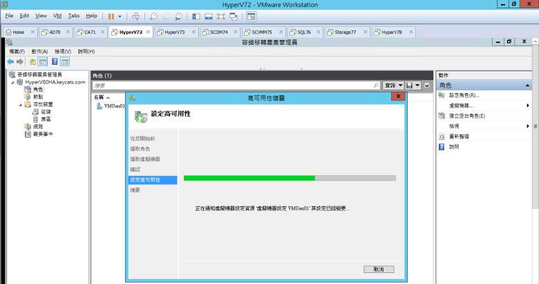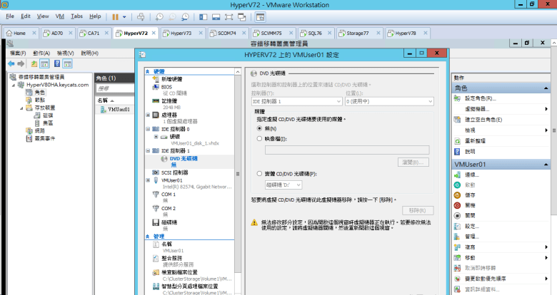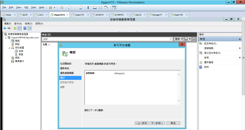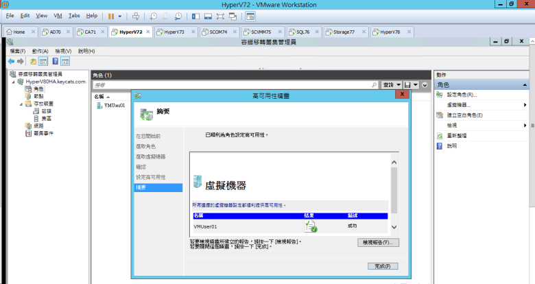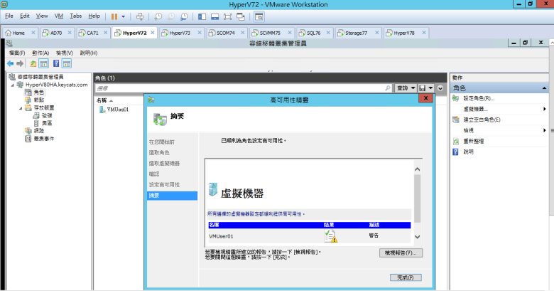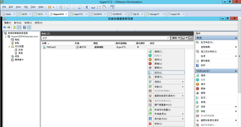 已變更存放至 HyperV80HA.keycats.com 叢集磁區內 (C:\ClusterStorage\Volume1\VMUser01…)
