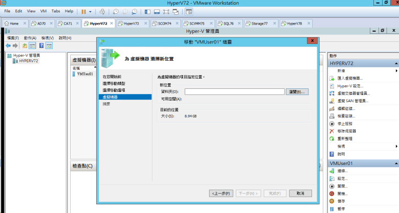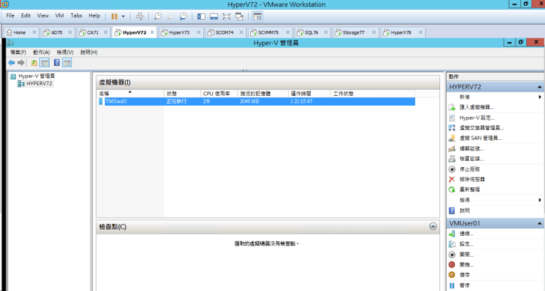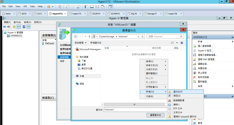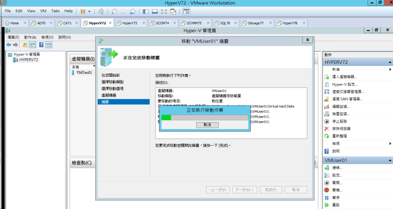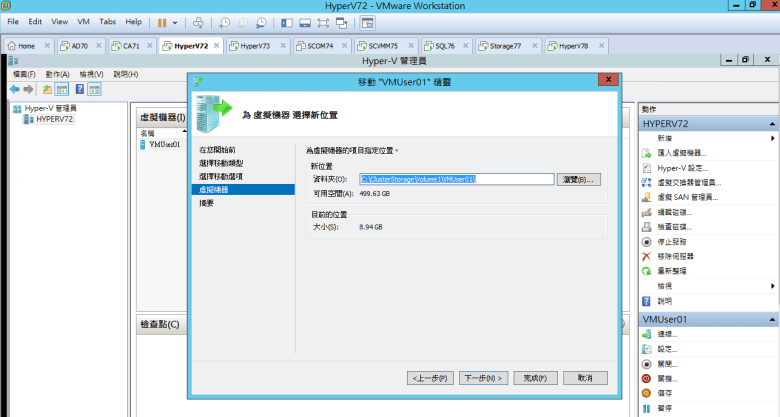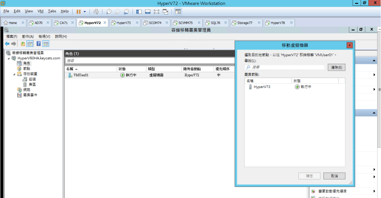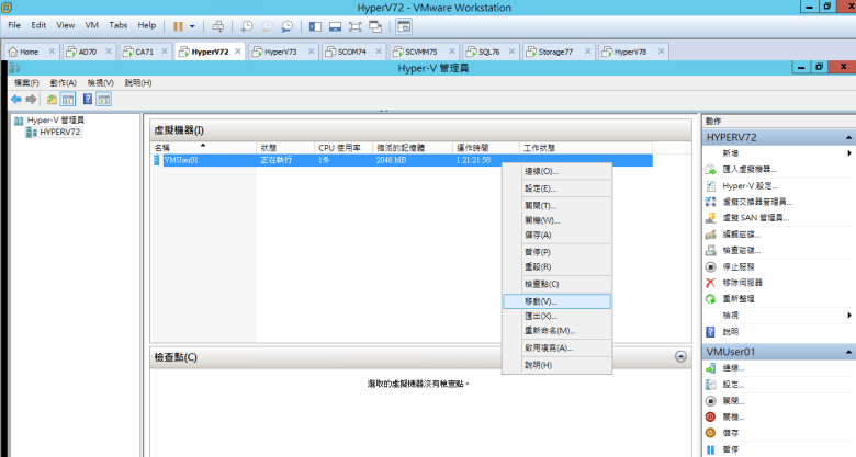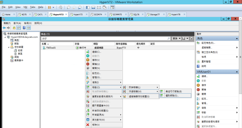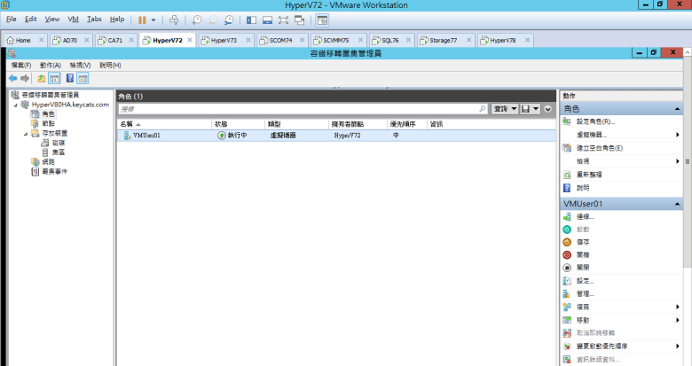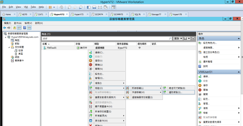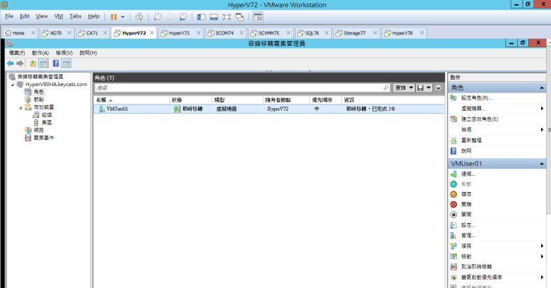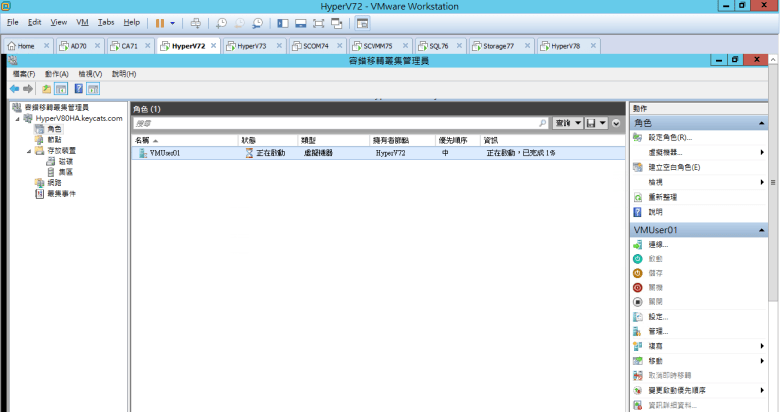 [ Ps.目前 VMUser01 在 HyperV72 的節點上 ]