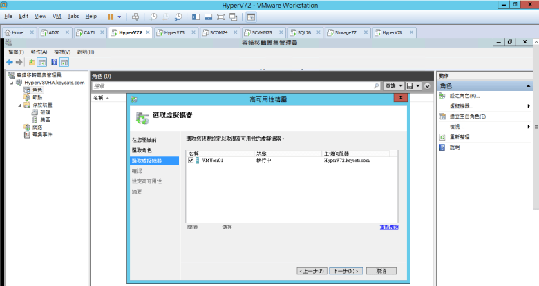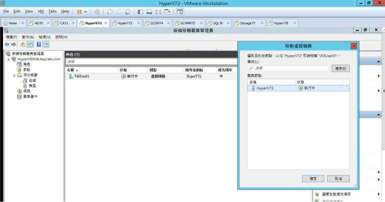 所以 只能選擇一個節點進行移轉 (HyperV73)