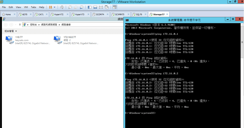 輸入 Ping 172.16.0.2 (HyperV73 正常)