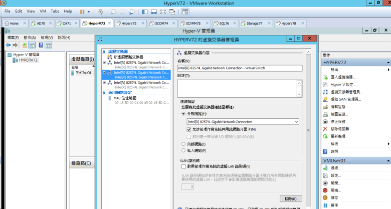 確認 HyperV72 虛擬交換器管理員 (名稱需一致)