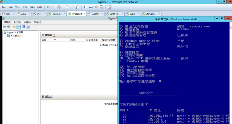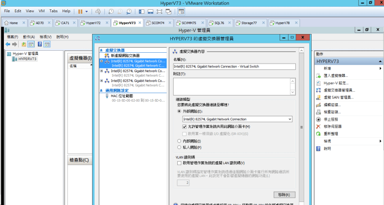 確認 HyperV73 虛擬交換器管理員 (名稱需一致)