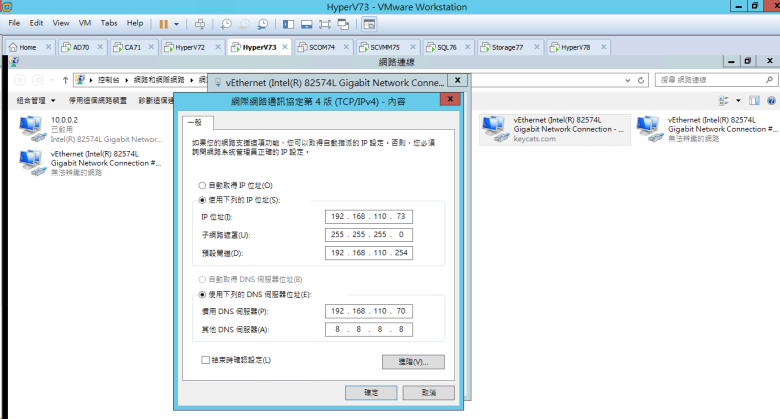 [ 檢查 Hyper-V 73 虛擬伺服器主機 (網卡正常測試) ]