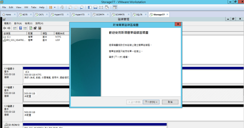點選 新增簡單磁碟區 (磁碟 1 and 磁碟 2)