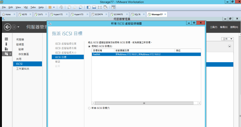 [ Ps. 在設定 (HADisk2) 請選擇 現有的 iSCSI 目標 (直接選擇已設定) ]