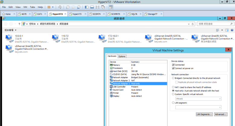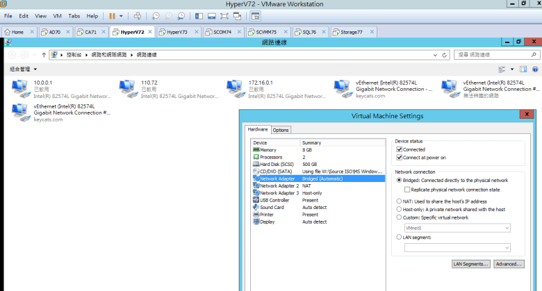 目前 有一片 HyperV72 (網卡) (Network to Active Directory)