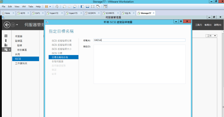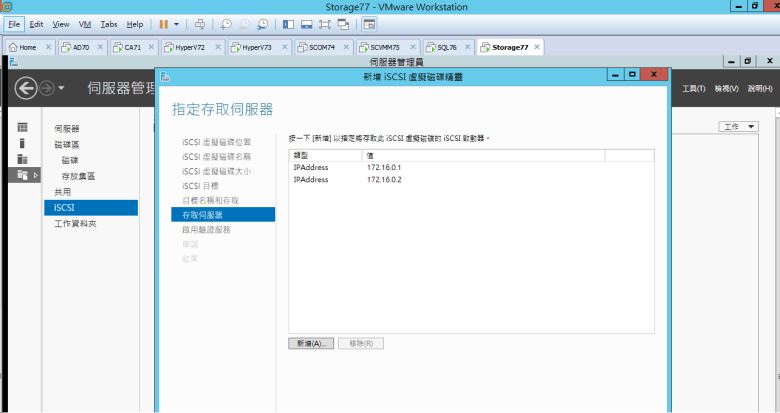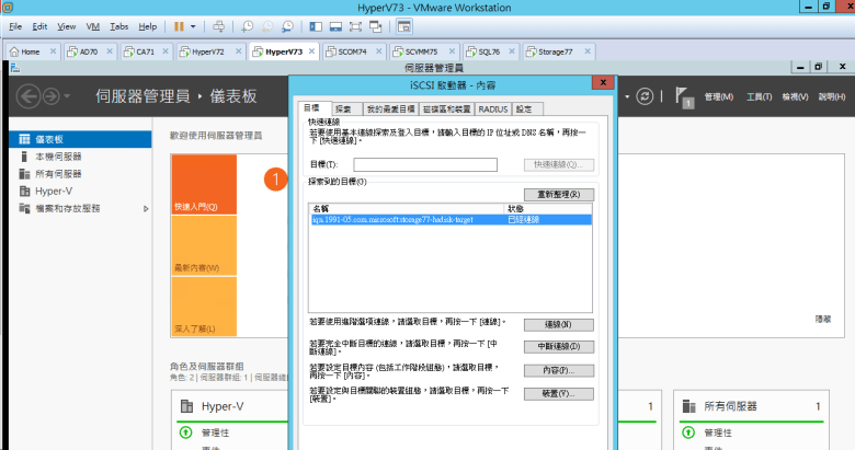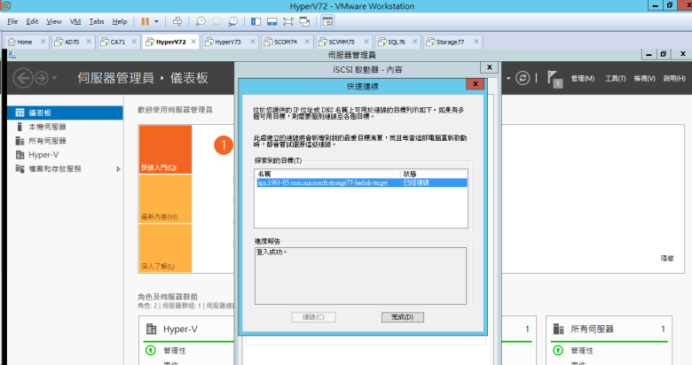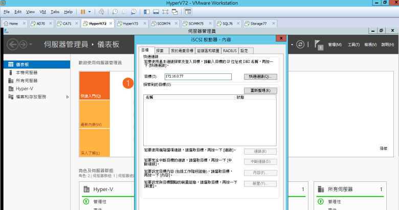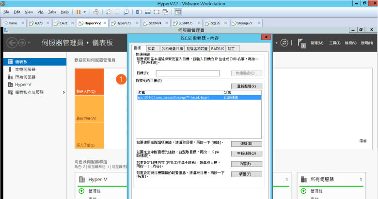 [ 設定 HyperV72 虛擬伺服器主機 (iSCSI 連接) ]