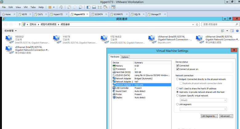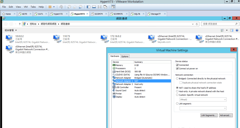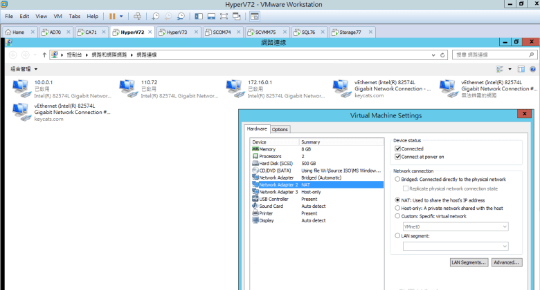目前 有一片 Storage (網卡) (Network to HyperV72 and HyperV73)