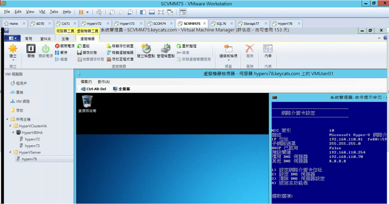 [ Ps.開啟 SCVMM 主控台 能控制 VMUser01 伺服器主機 ]
