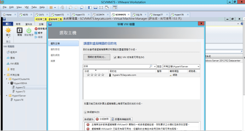[ Ps.確認 錯誤訊息為 已設定 讓此 VM 成為高可用性 請務必取消 (因 HyperV78 無建置 Hyper-V Cluster) ]