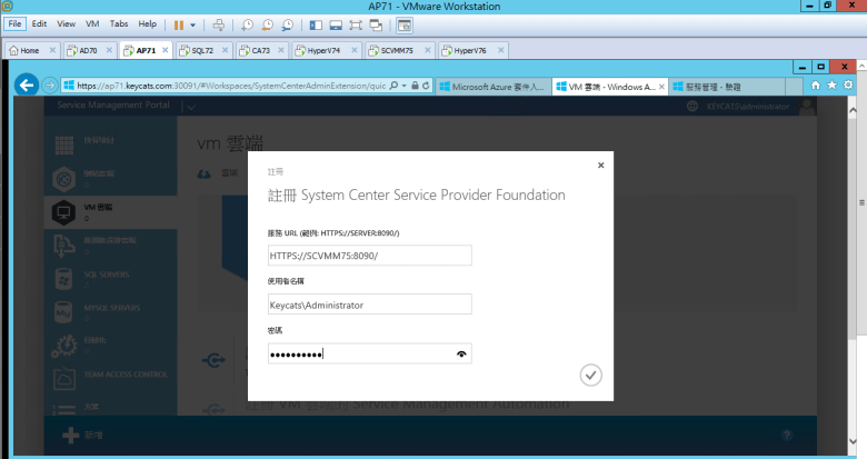 輸入 https://SCVMM75.keycats.com:8090 (站台名稱)