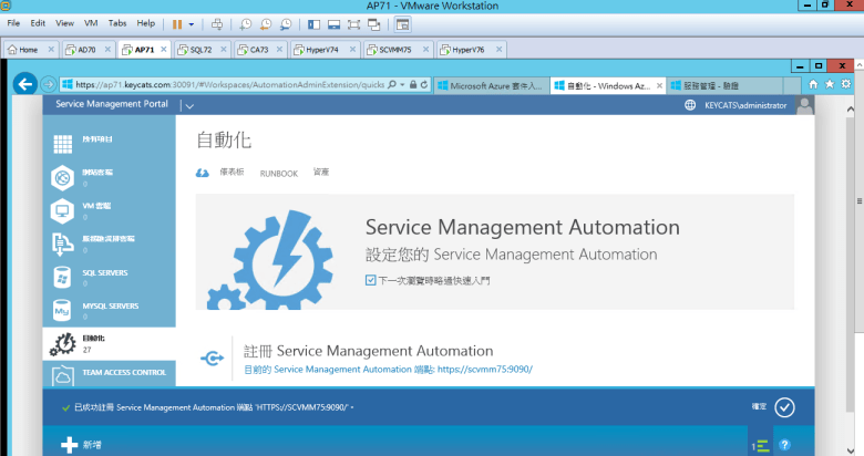 已成功註冊 https://SCVMM75.keycats.com:9090/