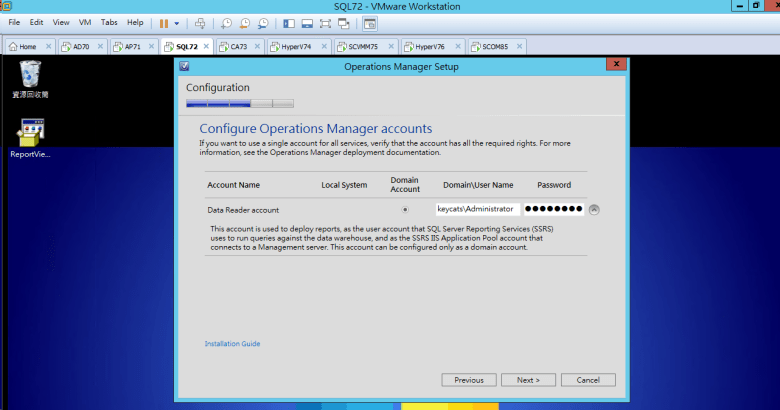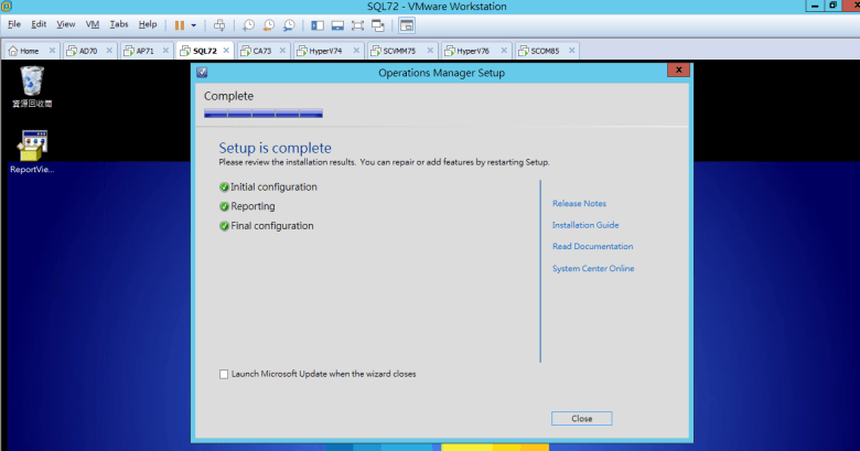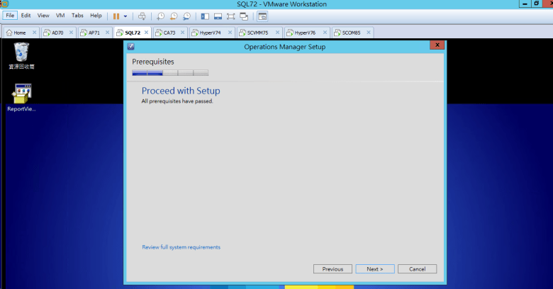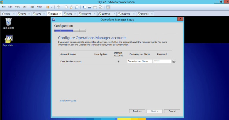 輸入 SCOM85 (建置 System Center 2012 R2 Operations Manager Server 時候 所設定名稱)