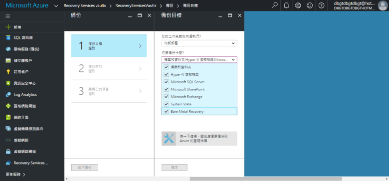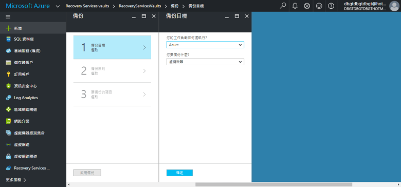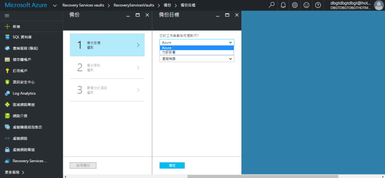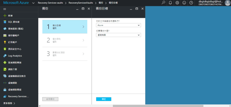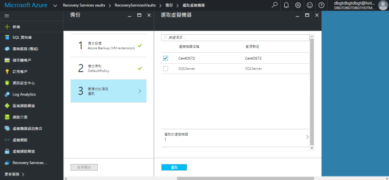 [ Ps.在此 選擇 Azure 只能備份 “虛擬機器" ]
