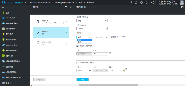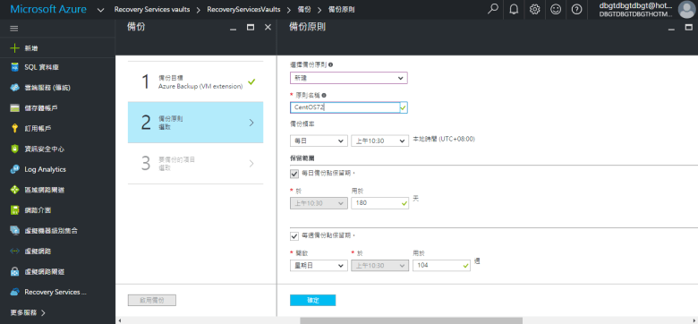 [ Ps.如選擇 (每日備份點保留期) 請輸入 “保留期間範圍" “天數" ]
