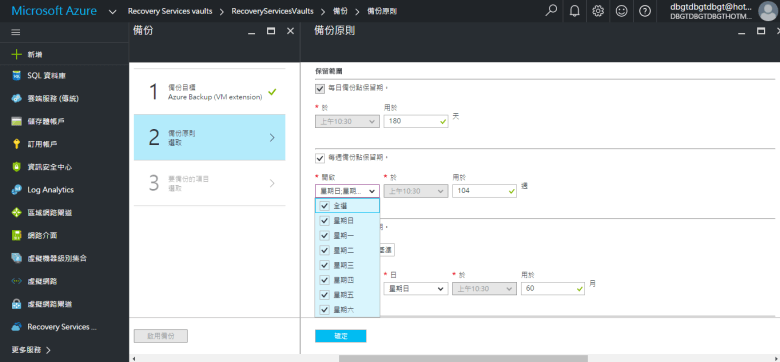 [ Ps.自訂 “每週備份保留期" 請輸入 “保留期間範圍" “週數" ]
