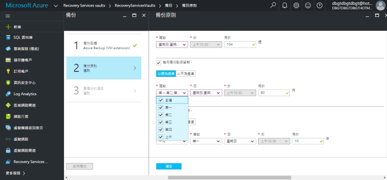 [ Ps.自訂 “每年備份保留期" 請輸入 “保留期間範圍" “年數" ]