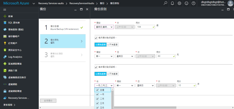 [ Ps.自訂 “每月備份保留期" 請輸入 “保留期間範圍" “月數" ]