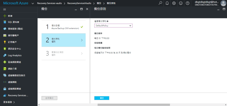 選擇 備份原則 (預設值 DefaultPolicy)