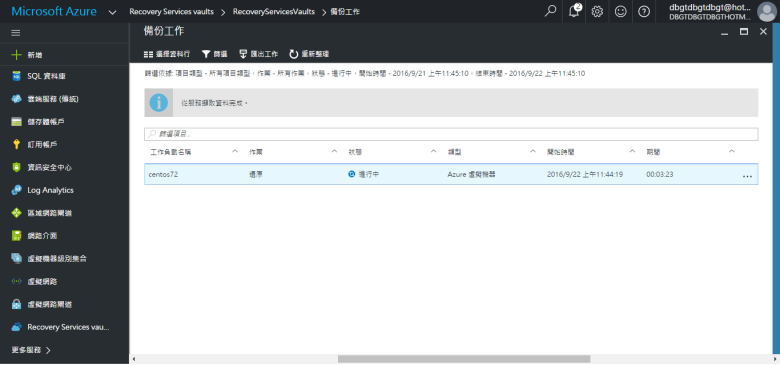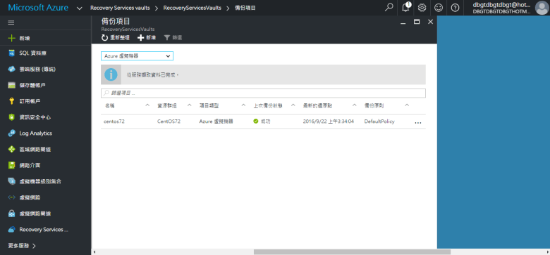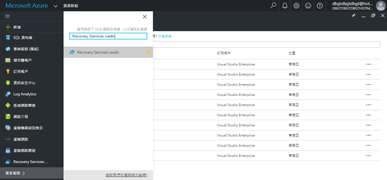 選擇 RecoveryServicesvaults (剛建立的)