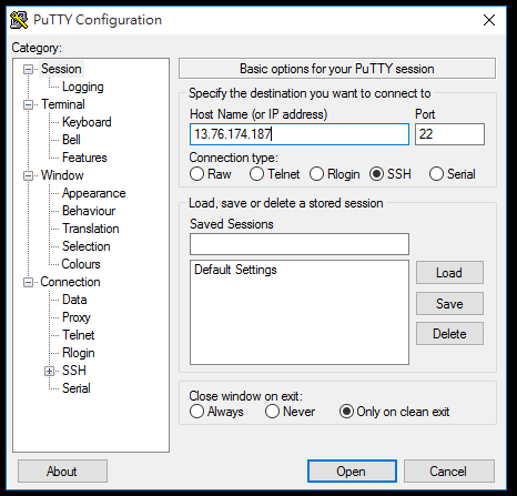 開啟 PuTTY