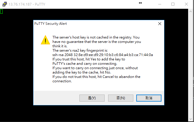 輸入 13.76.174.187 (Public IP Address)