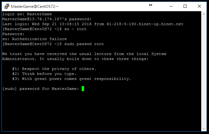 輸入 sudo passwd root (變更密碼)