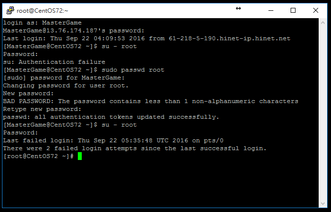 確認 root@CentOS72 (已變更為 Root 權限)