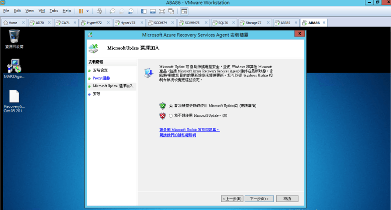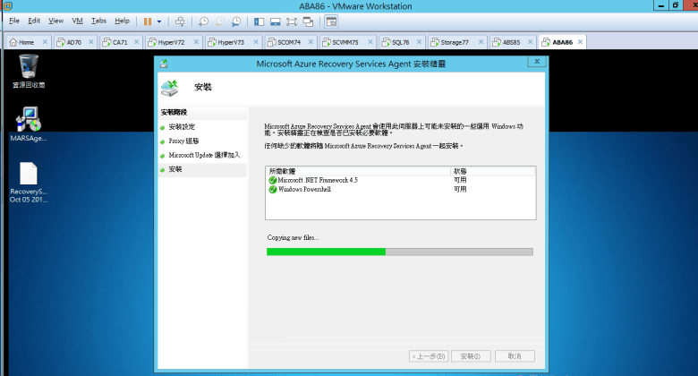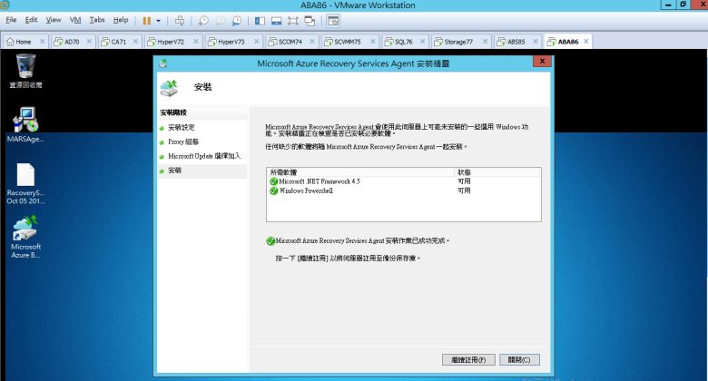 [ Ps.安裝 Microsoft Azure Recovery Services Agent (必須至少 1GB 可用空間) ]