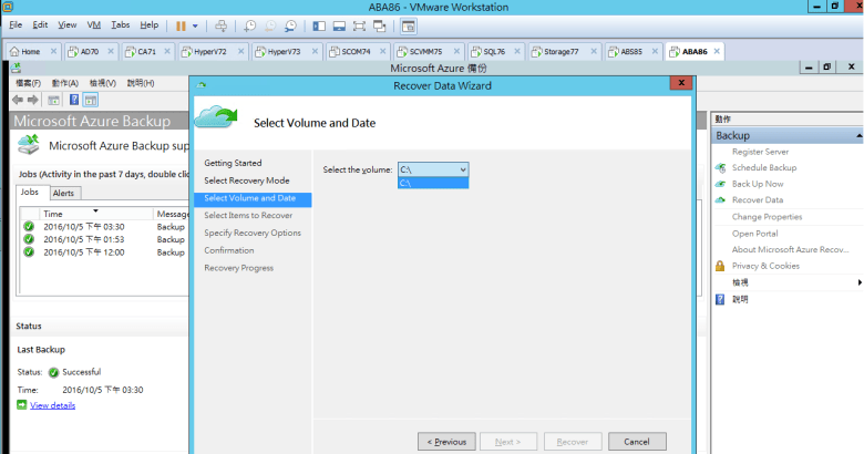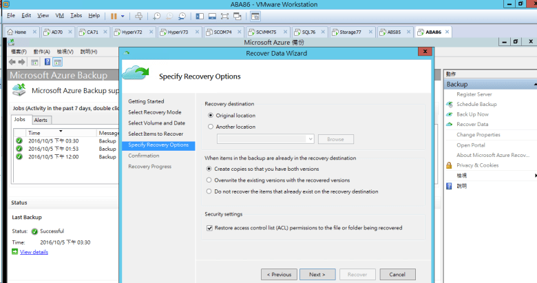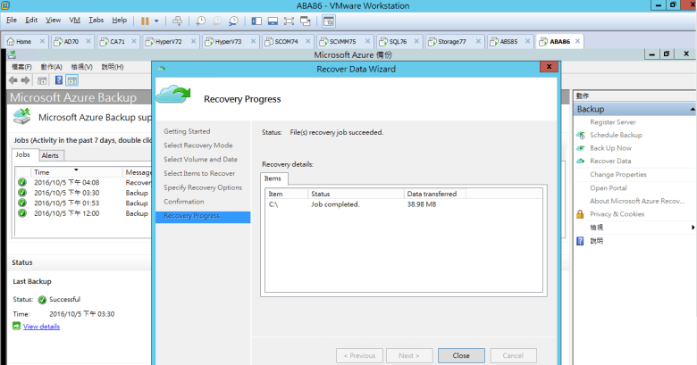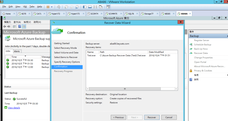確認 Recovery 已完成 Azure Backup Recover Data (Test)