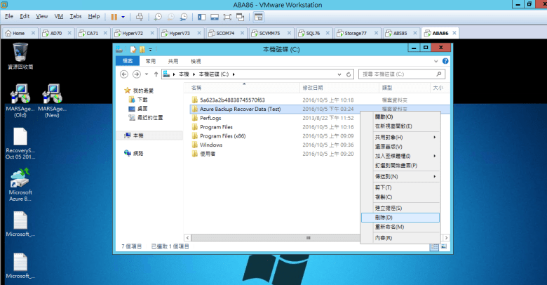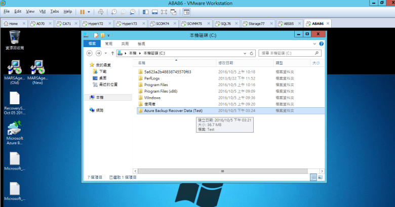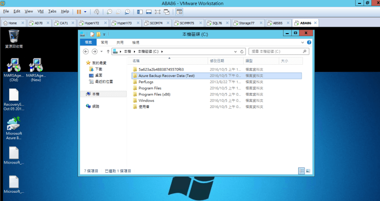 建立 Azure Backup Recover Data (Test) 資料夾