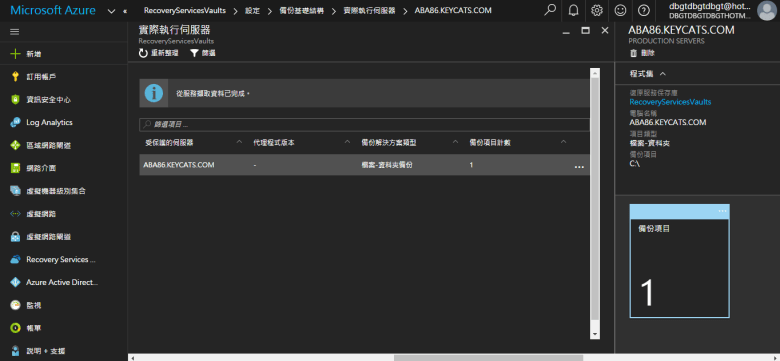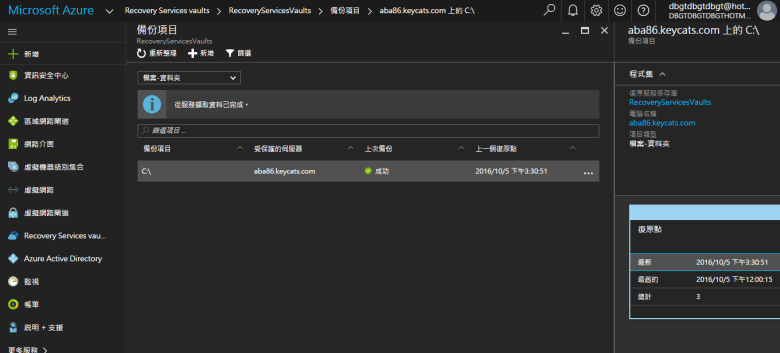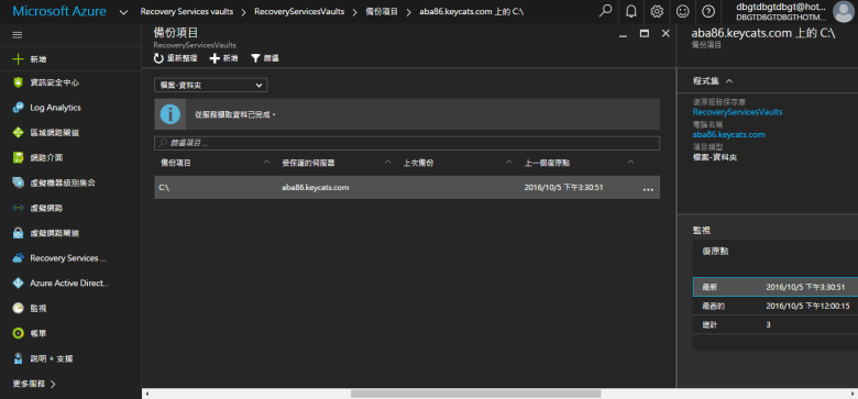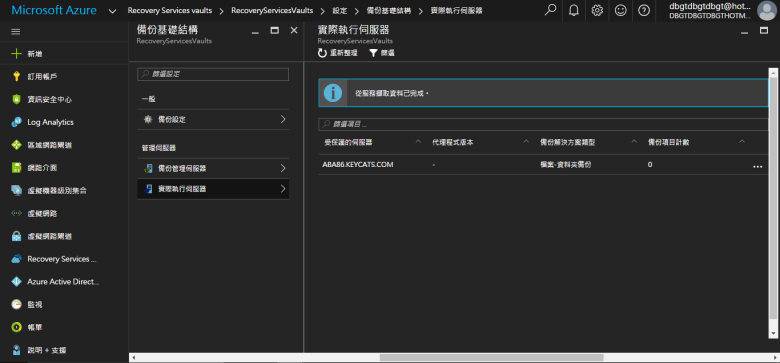開啟 Microsoft Azure Backup