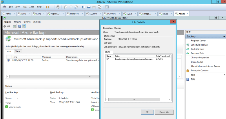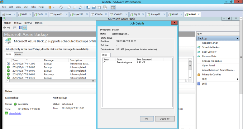 確認 Jobs Details (正在備份)
