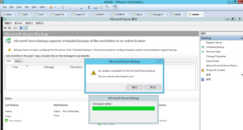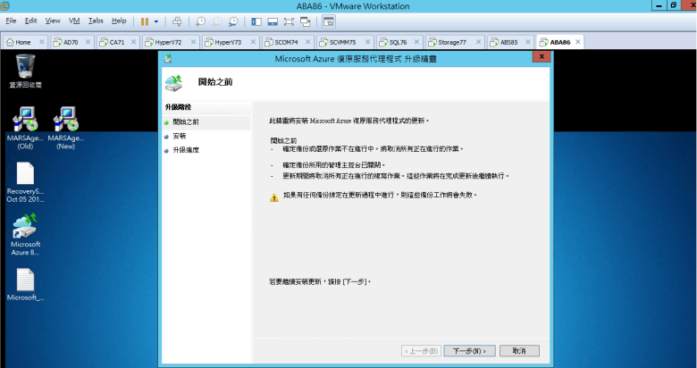 [ 警告 Microsoft Azure Recovery Services Agent (可以安裝新版本) ]