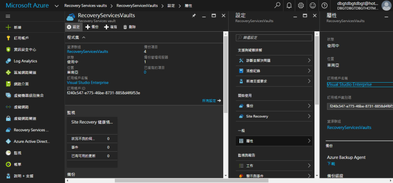 點選 Recovery Services vaults (已建立)