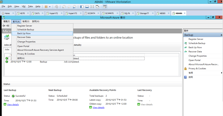 確認 Last Back (備份完成時間 2016/10/05 下午 01:53)