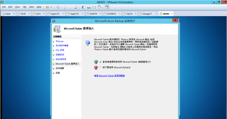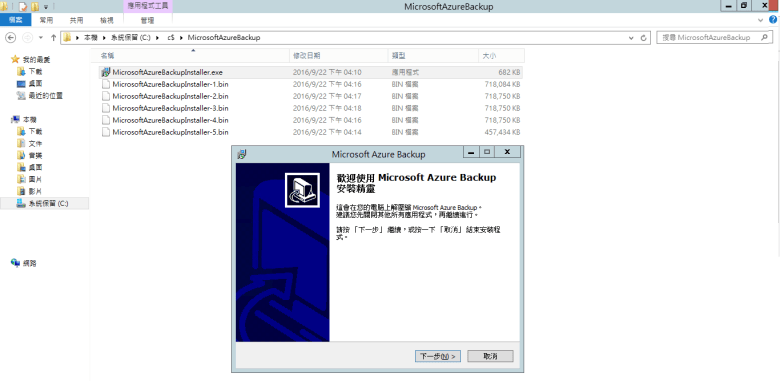 跳出 Microsoft Azure Backup 安裝精靈