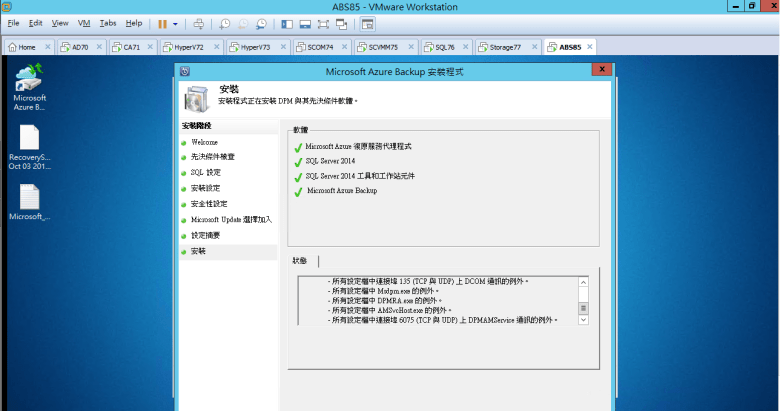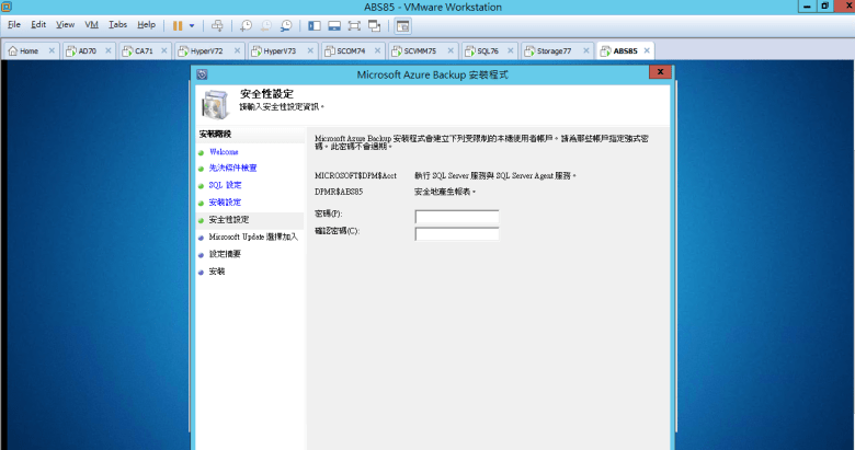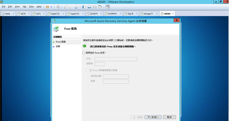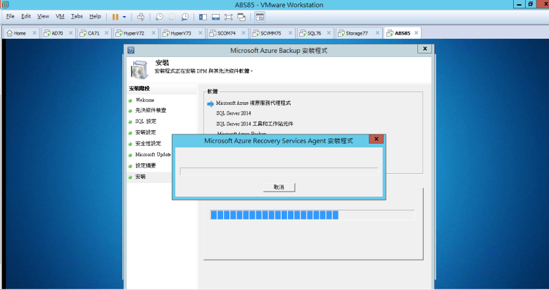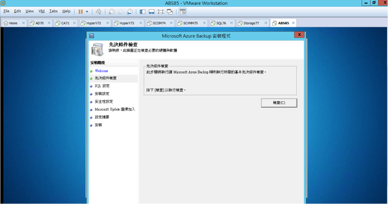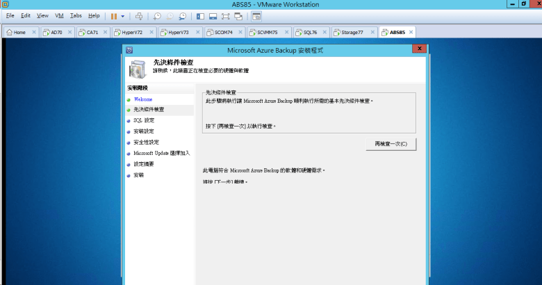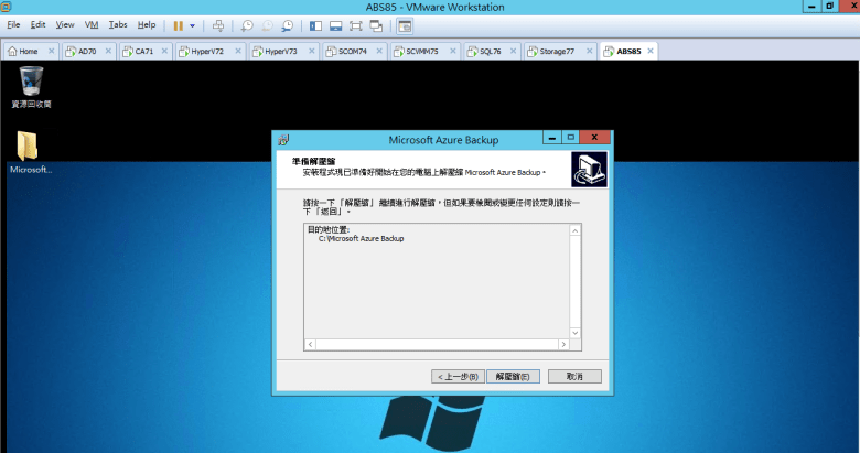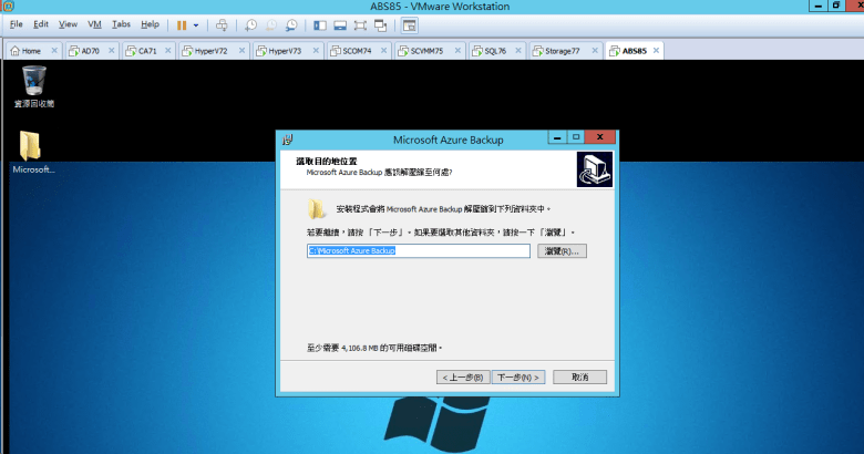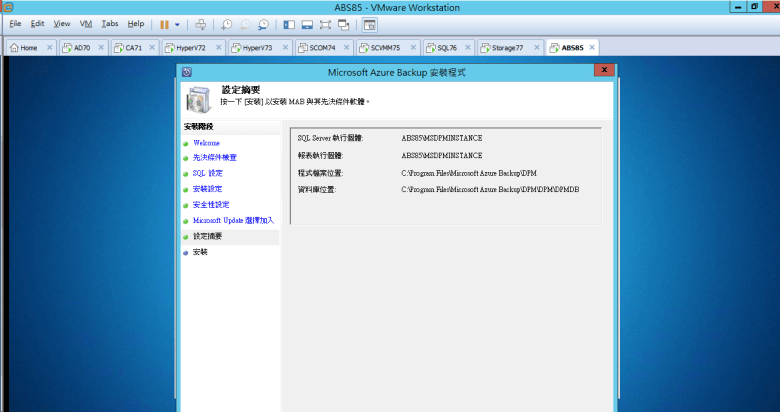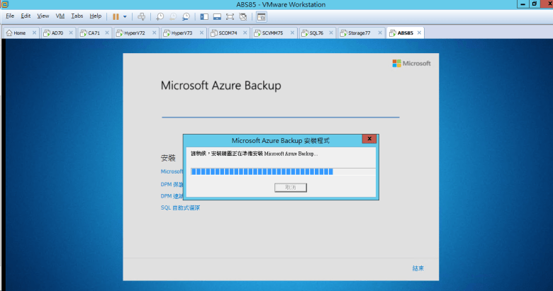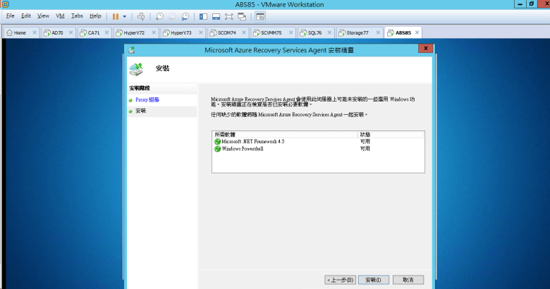 建置 Microsoft Azure Backup Server (安裝 Azure Backup Server)
